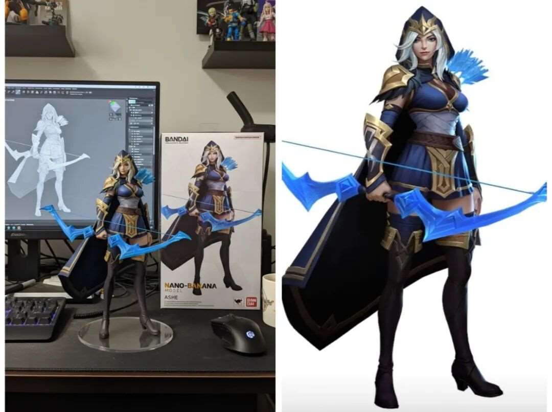 Nano Banana还能助力3D手办创作。创作者可以利用它先生成2D手办设计图,无论是动漫角色、原创人物还是写实形象,只需输入详细描述,它就能精准绘制出符合要求的设计图。在此基础上,创作者可以将2D设计导入3D建模软件,结合Nano Banana生成的细节,进一步完善3D模型,最终用于3D打印制作手办。