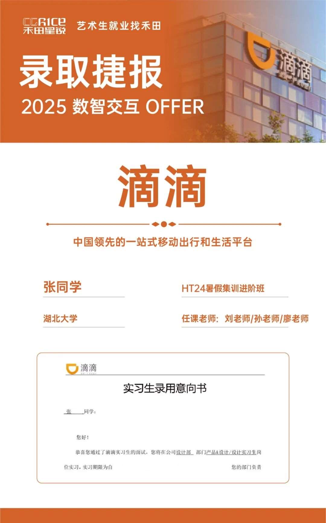 工信部数智设计产教融合专家、阿里巴巴认证AIGC设计专家;毕业于黑龙江大学艺术设计专业,UI教学经验丰富,带领学员入职字节跳动、蔚来、湖北广电等一线互联网企业、国企,曾担任凤凰传媒黑龙江事业部美编、武汉滴滴网络科技有限公司UI设计师、武汉小松科技有限公司设计主管*仅展示部分作品,以上作品均为禾田学员在校期间产出,禁止转载,侵权必究