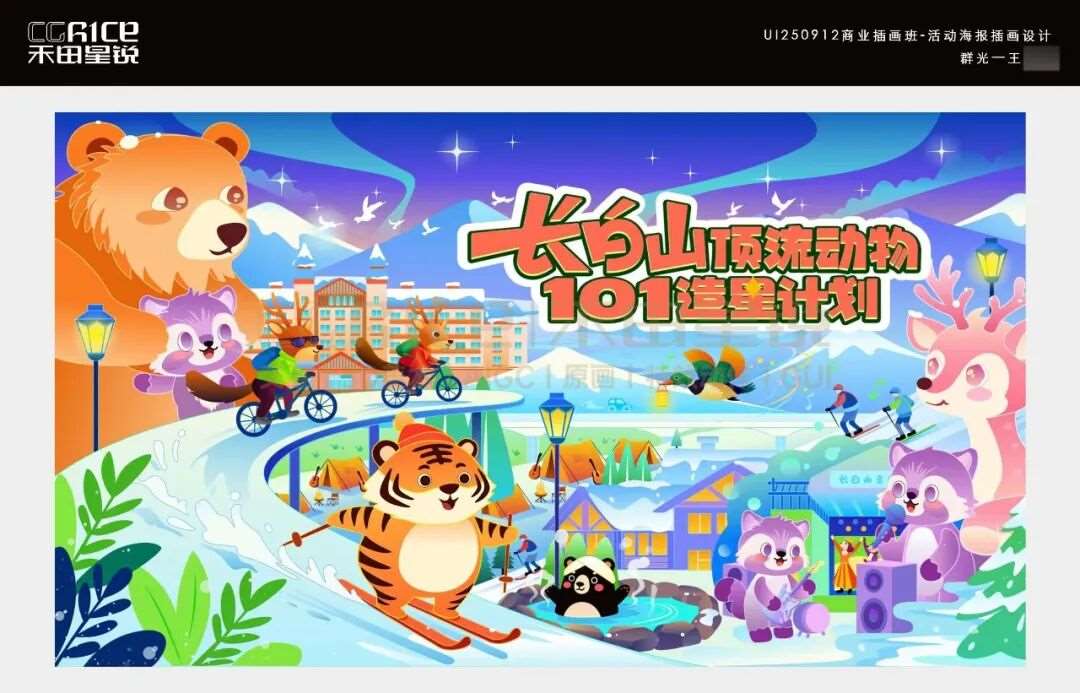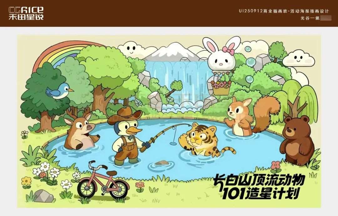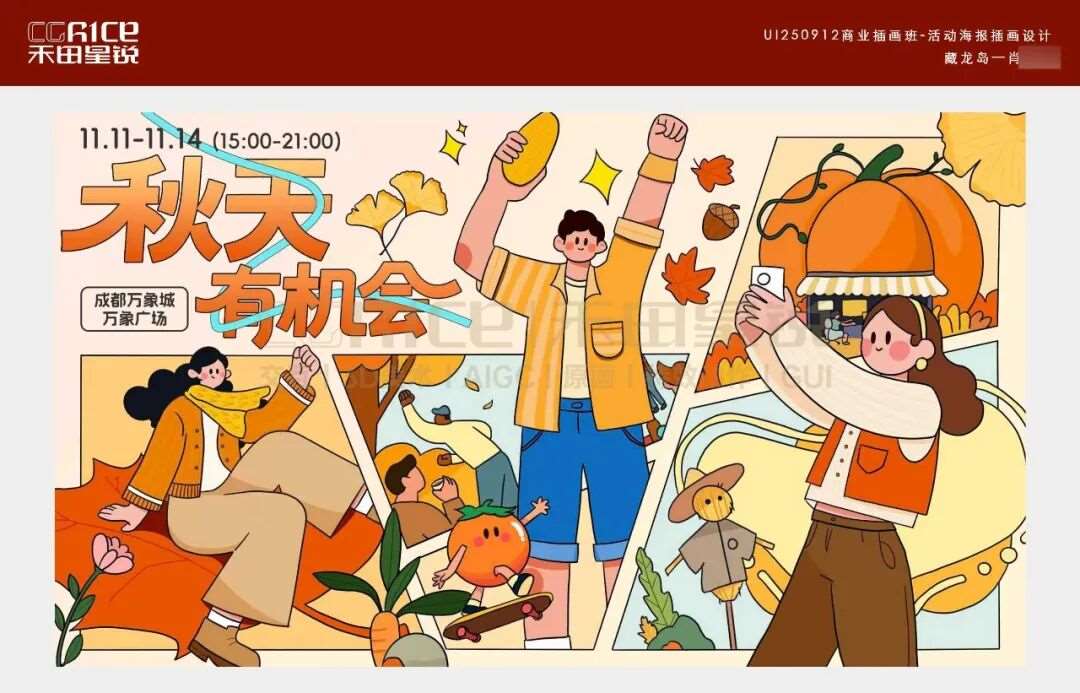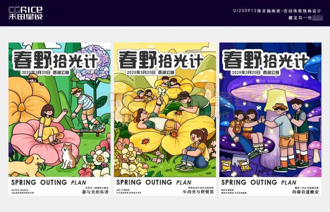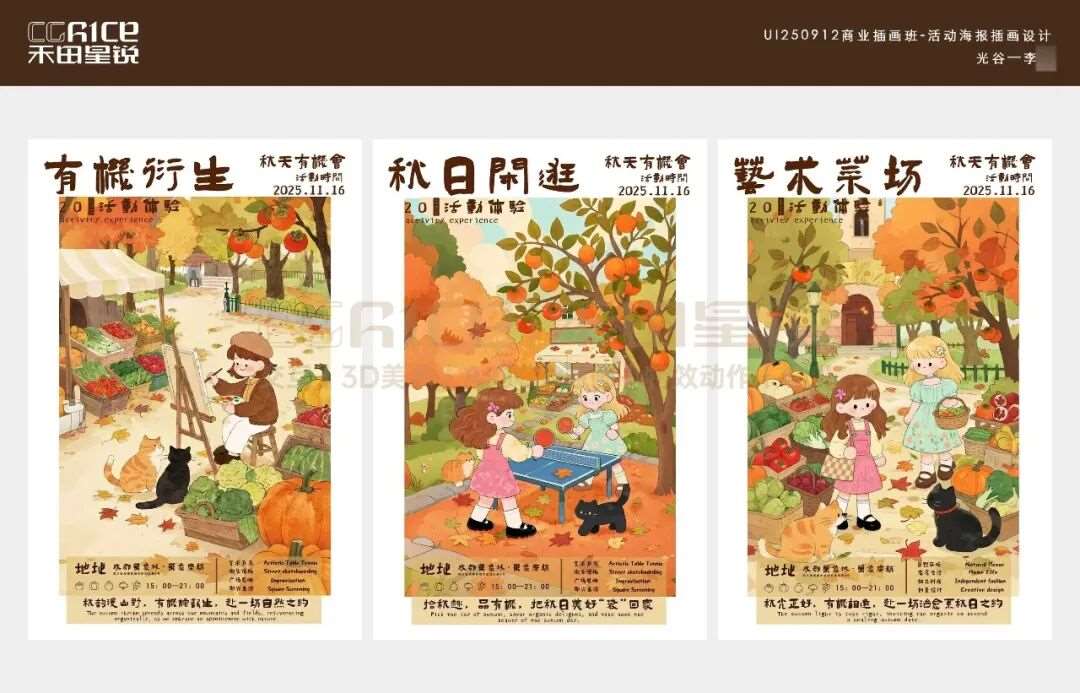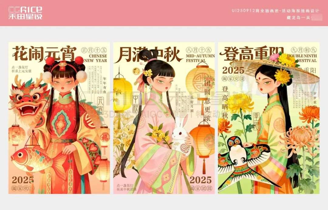 多会一项手绘插画技能,就能多一分底气!它不仅能靠独特风格给作品集、宣传物料拉满辨识度,让你在求职材料里快速被 HR 注意到,还能直观展现你的创意与审美实力,帮你甩开只会 “套模板” 的竞争者。今天分享的这组作品集,是来自禾田星锐数智交互进阶班学员们的作品,同学在禾田进行了系统的学习,产出了一系列插画设计作品,创作之初,AI 为同学们打开了思路的窗口,提供了多元的创意方向与构图参考,但从线条勾勒到色彩晕染,从细节打磨到情感注入,每一笔都是学生们亲手完成的用心之作。跟着小糖一起来欣赏吧~